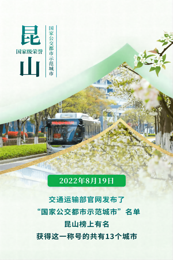 好消息!昆山榮獲“國家公交都市建設示范城市”稱號(2022/09/5)